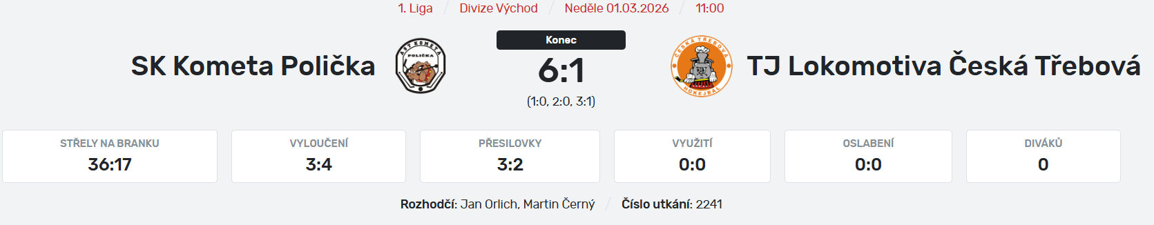 01.03 neděle 11:00 Kometa Polička : LOKO ČT