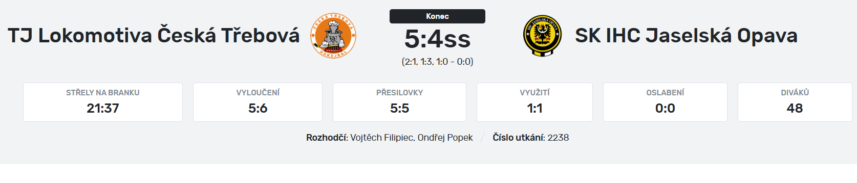 28.02 sobota 12:00 LOKO ČT : Jaselská Opava 5 : 4 ss