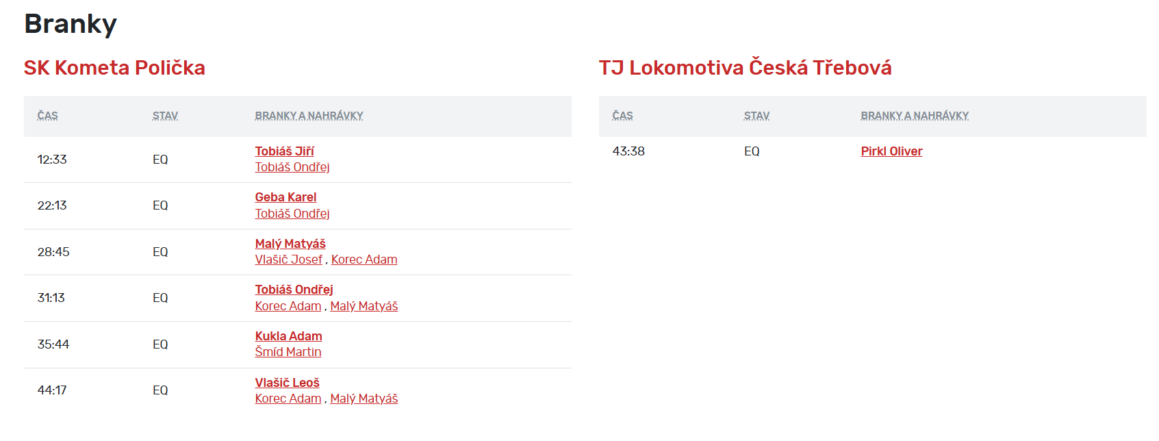 J-Elita : Kluci Česákovi 7 : 5, J-Elita : Hasiči 9 : 1, Kluci Česákovi : Hasiči 4 : 2