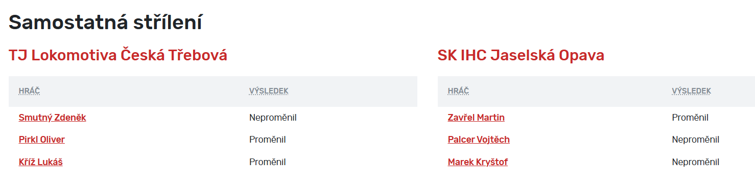 Parník : Nuly 2:3, Parník : Ruž. prasátka 3 : 3, Nuly : Ruž, prasáka 2 : 3