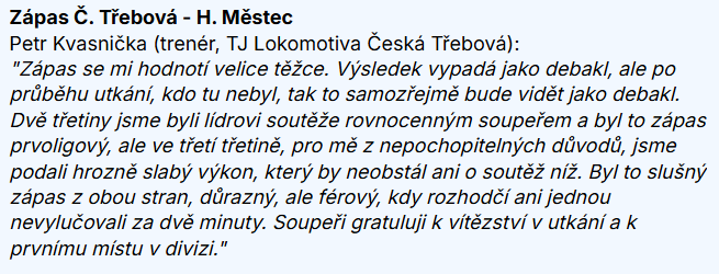 A pokud se nestane zázrak se 19.4 doma rozloučí se sezonou v derby s Poličkou.